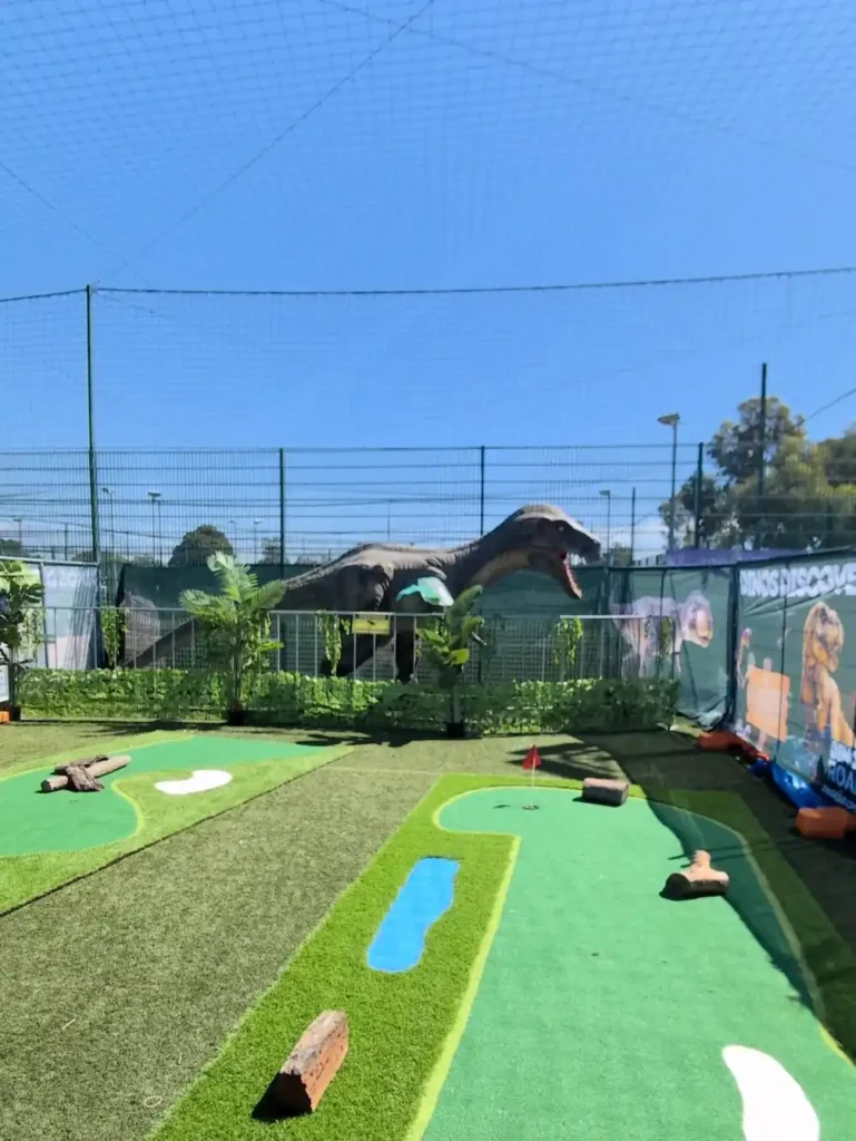 Mini putt golf through a dinosaur landscape. 18 holes of prehistoric putting fun for all ages.